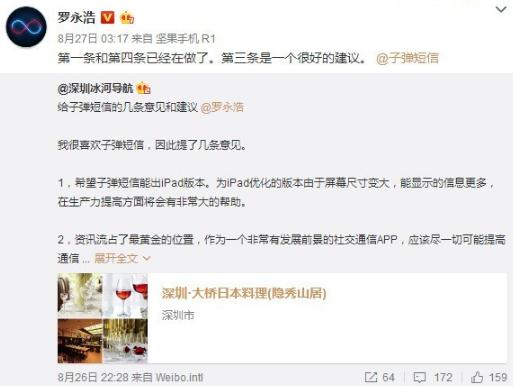 本月20日,錘子科技在新品發(fā)布會(huì)上,正式公布了一款名叫“子彈短信”(邯鄲微信開(kāi)發(fā))的極速高效聊天軟件,發(fā)布會(huì)之后,關(guān)于子彈短信的好消息不斷傳來(lái),不僅剛上線2天就榮登AppleStore第一,全榜第四,還在昨天完成了1.5億融資,發(fā)展十分迅猛。