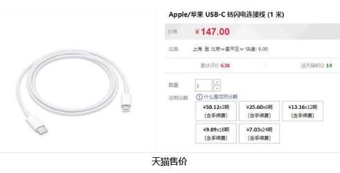 現(xiàn)在官方的USB-C to Lightning數(shù)據(jù)線在天貓售價(jià)147元,而支持PD協(xié)議的充電頭可以購(gòu)買第三方的,比如小米的45W快充頭僅需99元,搭配蘋果官方線就可以實(shí)現(xiàn)快充。還有最近火熱的坤興27W充電頭僅需60多元,支持多種快充協(xié)議。等第三方MFi企業(yè)研發(fā)出USB-C to Lightning線之后,購(gòu)買一套快充的價(jià)格就更便宜了。