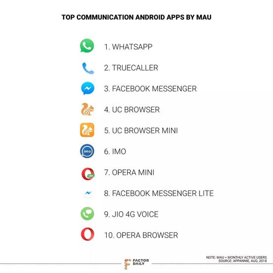 在最初的圈地時代結(jié)束后,各個產(chǎn)品或者找到了自己的位置,或者退出了印度市場,除了已經(jīng)擁有一些市場的WhatsApp之外。