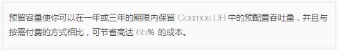 最后,預(yù)留容量模型可以降低成本,特別是在預(yù)先知道所需計(jì)算能力(也稱為請(qǐng)求單元)的情況下。Azure Cosmos DB 的產(chǎn)品經(jīng)理和架構(gòu)師 Rimma Nehme 表示,通過(guò)預(yù)付一到三年的費(fèi)用,成本可能會(huì)大幅下降。