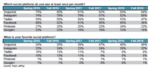 北京時(shí)間 10 月 23 日凌晨消息,在著名投行派杰(Piper Jaffray)周一發(fā)布的關(guān)于 2018 年秋季青少年最常用社交平臺(tái)的調(diào)查中,Instagram 超過(guò) Snapchat 成為全球青少年使用最多的社交 App。