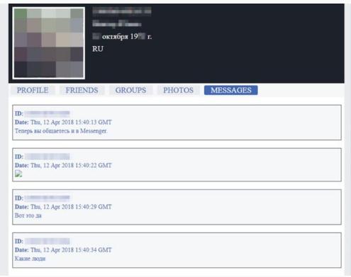 BBC 就此與 5 名俄羅斯 Facebook 用戶取得了聯(lián)系,證實被上傳的私人信息是屬于他們的。其中一名用戶的被盜信息是最近度假時的照片,另一名用戶與 Depeche Mode 樂隊演唱會有關(guān)的聊天記錄被盜,還有一名用戶則是抱怨自己女婿的相關(guān)信息被公布了出來。此外,一對戀人之間的親密通信也遭到泄露。