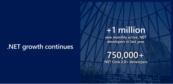 微軟在現(xiàn)場承諾,將在 .NET Core 上為這些框架做出貢獻。第一波代碼將于今天在 GitHub 上發(fā)布,未來幾個月將出現(xiàn)更多代碼。據(jù)最新數(shù)據(jù),目前 GitHub 擁有 2800 萬開發(fā)者。