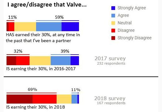 這則調(diào)查報(bào)告名為“Valve 應(yīng)該知道的所有事,3.0”。因?yàn)檎{(diào)查員 Lars Doucet 要和 Valve 面談,所以今年的調(diào)查不如往年全面。但這則報(bào)告的確展現(xiàn)出了許多游戲開(kāi)發(fā)者對(duì) Valve 以及 Steam 的運(yùn)作方式不滿意。