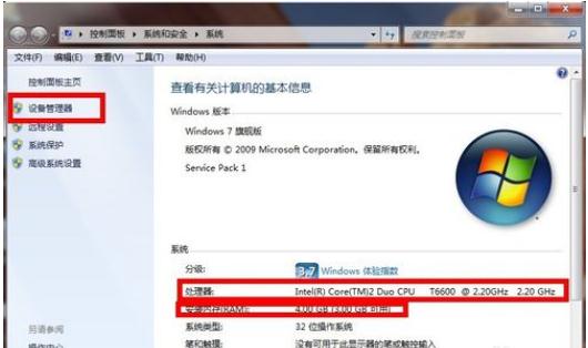 在屬性選項(xiàng)卡里可看到基本的CPU及內(nèi)存配置,更詳細(xì)的配置資料點(diǎn)擊選擇左側(cè)的設(shè)備管理器!