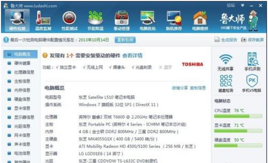 進(jìn)入魯大師,什么都一目了然!當(dāng)然還有其它功能,不在本文敘述范圍!
