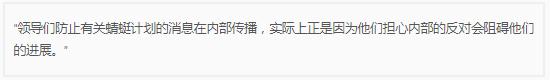 有消息人士稱(chēng),Google 的高層認(rèn)為“蜻蜓計(jì)劃”過(guò)于敏感,以至于只會(huì)口頭溝通,不會(huì)在高層會(huì)議上留下任何紙質(zhì)文件記錄。一些了解計(jì)劃的人曾被告知,如果與不知情的同事談?wù)摯耸?,有可能丟掉工作。