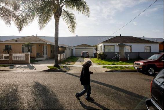 一名行人路過一棟房屋,這棟房屋(位于圖中右側)靠近霍桑測試隧道附近,最近為 Boring Company 買下,攝于 12 月 18 日