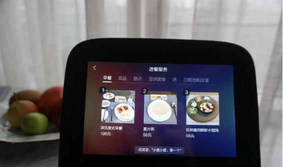 以上提到的每一項(xiàng)具體的服務(wù),后面都會(huì)有更詳細(xì)的選項(xiàng),比如在叫餐環(huán)節(jié),小度在家的屏幕上會(huì)依次呈現(xiàn)早餐、甜品、三明治漢堡等種類,并且圖文并茂展示出來,此時(shí)你可以語音選擇或者直接用屏幕點(diǎn)擊的方式。