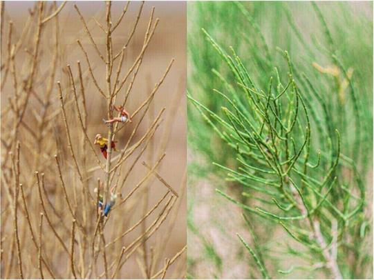 2017 年春天,一歲的梭梭寶寶綠了,眼見著干枯的枝條,變成了綠油油、肉乎乎的小芽……