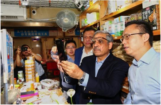 ↑↑↑巴基斯坦央行行長(zhǎng)借用螞蟻金服掌門(mén)人井賢棟的支付寶嘗試掃碼買(mǎi)一包葡萄干