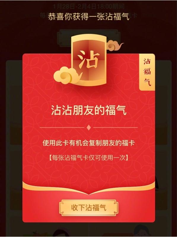 沾福氣卡的獲取方式說來也簡(jiǎn)單,就是掃福,或者到店支付寶消費(fèi),都有機(jī)會(huì)獲取,但是這個(gè)幾率嘛……就看你有沒有錦鯉的體質(zhì)嘍。