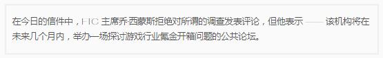 外媒 TheVerge 報道稱,他們拿到了一封來自美國聯(lián)邦貿(mào)易委員會(FTC)的機構信函,信中表示要在今年晚些時候舉辦一場公共研討會,對視頻游戲行業(yè)的氪金開箱子行為進行討論。這場會議將匯集視頻游戲行業(yè)的從業(yè)者、消費者、以及倡導者,表達對一些極富爭議的做法的擔憂和討論。