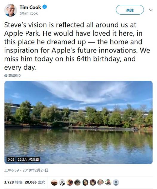 如果史蒂夫·喬布斯還活著,那么今天就是他的 64 歲生日。蘋果現(xiàn)任 CEO 蒂姆·庫克發(fā)布推文紀(jì)念喬幫主,推文中寫道:“我們工作生活的 Apple Park 園區(qū)處處體現(xiàn)了史蒂夫的愿景。如果他還在的話,應(yīng)該會非常喜歡這個他夢寐以求的地方-蘋果未來創(chuàng)新的家園和靈感源泉。今天是他 64 歲的生日,我們無時無刻不在想念他。”