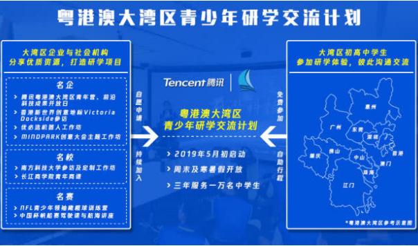 2 月 25 日,騰訊宣布發(fā)起“粵港澳大灣區(qū)青少年研學(xué)交流計(jì)劃”,在每年舉辦暑期大灣區(qū)青年?duì)I的基礎(chǔ)上,將聯(lián)合大灣區(qū)重點(diǎn)企業(yè)、大學(xué)和社會(huì)機(jī)構(gòu),常設(shè)“大灣區(qū)青少年研學(xué)交流基地”,面向粵港澳中學(xué)生,在周末及寒暑假期間,免費(fèi)集中開放名企名校名賽的研學(xué)交流項(xiàng)目,助其開闊視野、學(xué)習(xí)體驗(yàn)和交流融合。
