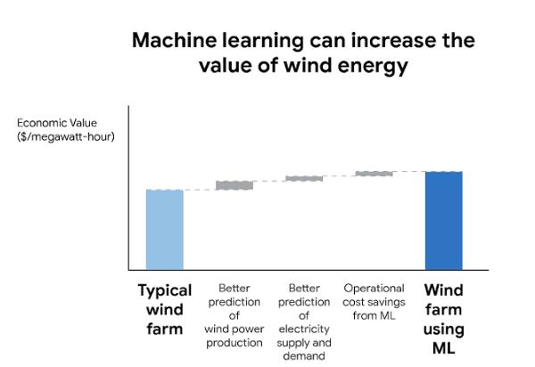 谷歌表示,與沒(méi)有部署 AI 預(yù)測(cè)的情況相比,新方案可將風(fēng)能的價(jià)值提升 20% 。