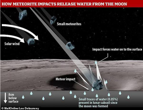 當然這是說笑。但根據美國宇航局研究人員的一項最新觀測顯示,由于遭受強烈的隕星撞擊,月球淺地表下蘊藏的水分似乎正被“擊打”出來。研究人員指出,這些月球淺地表下隱藏的水分可能早在月球最初形成時就已經存在了。而由于遭受嚴重撞擊,月球淺地表下的水分被發(fā)掘出來并散失到太空中去。估算顯示,這種撞擊效應每年會讓月球損失大約 220 噸的水。