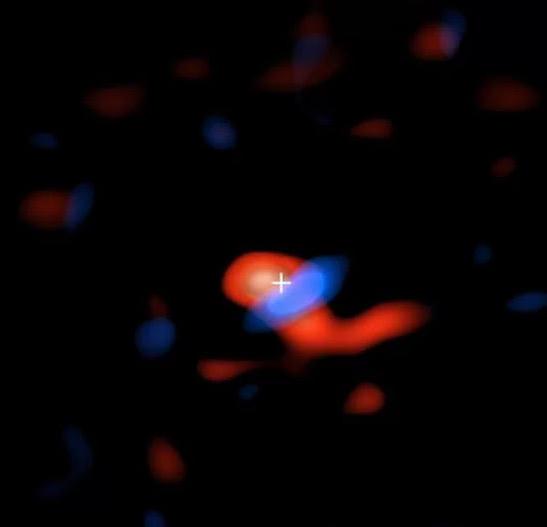 而天文學(xué)家使用智利的阿塔卡馬大毫米/亞毫米陣列(ALMA)天文臺首次探測到這些無線電波,并將測量結(jié)果拼接到了新圖像中。