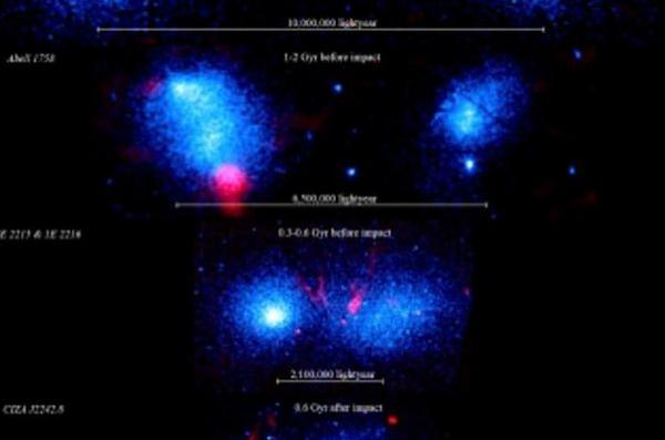 研究人員發(fā)現(xiàn),星系群相撞時(shí)會(huì)產(chǎn)生強(qiáng)烈沖擊波,并在此過程中將動(dòng)能轉(zhuǎn)化為熱量。