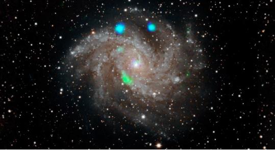 據(jù)外媒 Cnet 報(bào)道,近日天文學(xué)家借助美國(guó)宇航局(NASA)的 NuSTAR X 射線天文臺(tái)發(fā)現(xiàn)了一些奇怪的東西。在對(duì)“煙花”星系進(jìn)行成像時(shí),NuSTAR 發(fā)現(xiàn)了幾個(gè)神秘明亮的X射線光源,呈綠色和藍(lán)色斑點(diǎn)。然而數(shù)天之后,這些斑點(diǎn)就消失了。