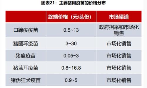 目前市場(chǎng)上主要的豬用疫苗包括:口蹄疫疫苗、豬藍(lán)耳疫苗、偽狂犬疫苗、豬瘟疫苗、豬圓環(huán)疫苗等。 從研發(fā)、生產(chǎn)工藝等角度分析,非洲豬瘟疫苗成本均高于其他豬用疫苗。