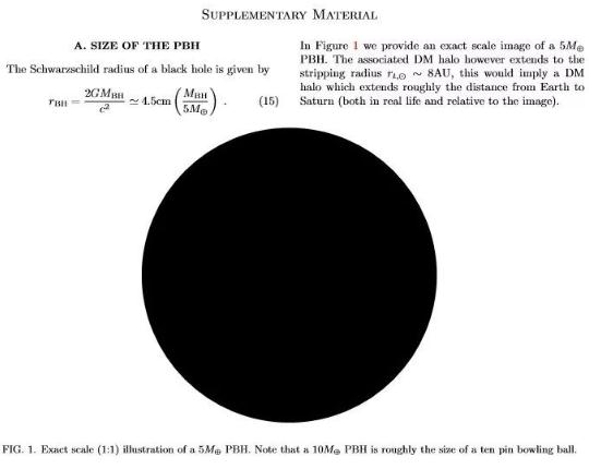 如果原初黑洞長到現(xiàn)在,到底有多大呢?物理學(xué)家并不十分清晰的對此并不確定。但香港科技大學(xué)物理系助理教授王一解釋道:“如果原初黑洞存在,并且沒有因為霍金輻射而蒸發(fā)殆盡,那么現(xiàn)在它的質(zhì)量可以非常大,也可以比較小——但這個最小質(zhì)量有一個下限,大概是 10^12 千克,小于地球質(zhì)量。”