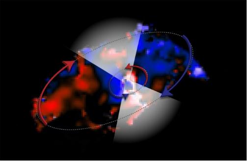 內(nèi)氣體盤從黑洞延伸 2 到 4 光年,并沿與該星系自身旋轉(zhuǎn)相同的方向旋轉(zhuǎn)。但是,距離黑洞 4 到 22 光年的第二個氣體盤朝相反的方向旋轉(zhuǎn)。這一發(fā)現(xiàn)使天文學(xué)家感到驚訝。