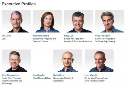 2019年11月26日(GMT標(biāo)準(zhǔn)時(shí)間)蘋果官網(wǎng)管理層顯示頁(yè)面,目前Ive已被完全刪除