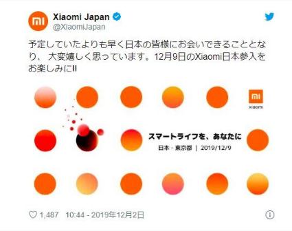 此前,小米公司高級副總裁王翔宣布將于 2020 年進入日本智能手機市場的消息,今日,小米在推特發(fā)文稱,原定進入日本市場時間提前。有消息稱,小米于本月 9 日發(fā)布將投入日本市場的智能手機和家電制品。