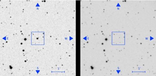 2016 年的時(shí)候,就有瑞典研究人員指出過一顆恒星消失。在上個(gè)世紀(jì)的 USNO 圖像中,人們可以看到一顆遙遠(yuǎn)的恒星在不停地翻滾。