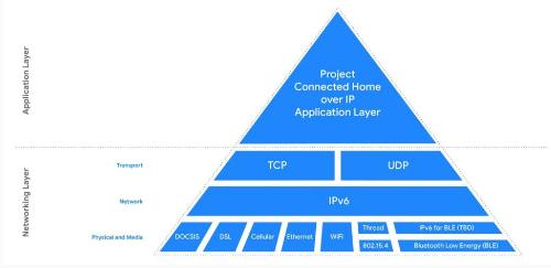 為什么要建立這樣一個基于 IP 的項目?根據(jù)官網(wǎng)公告給出的介紹,目前還沒有建立在 IP 之上的智能家居開放標準,而 IP 是互聯(lián)網(wǎng)的協(xié)議,并且是我們家庭和辦公室中最常用的網(wǎng)絡(luò)層。借助 IP,可以在獨立于其下層物理層和鏈路層的網(wǎng)絡(luò)之間路由消息,并且有大量經(jīng)過實踐檢驗的算法和基礎(chǔ)架構(gòu),可以以健壯和靈活的方式執(zhí)行路由、交換和防火墻。因此,IP 是在設(shè)備與另一設(shè)備、應(yīng)用程序或服務(wù)之間的通信中提供端到端安全性和隱私性的理想方式。