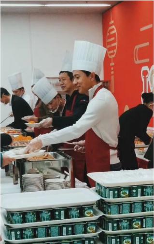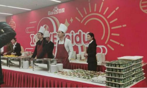 百度創(chuàng)始人李彥宏 Robin 和 CTO 王海峰化身百度員工食堂大廚,負責給大家分發(fā)肉餅。