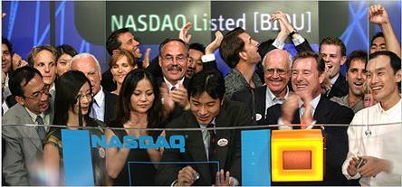 2005 年 8 月,百度正式掛牌納斯達克證劵交易所,發(fā)行價為 27 美金。開盤價為 66 美金,IPO 首日收盤于 122.54 美金,漲幅高達 354%,創(chuàng)當時美國股市 5 年來新高,市值達 39.58 億美金,為中概股最輝煌記錄之一。