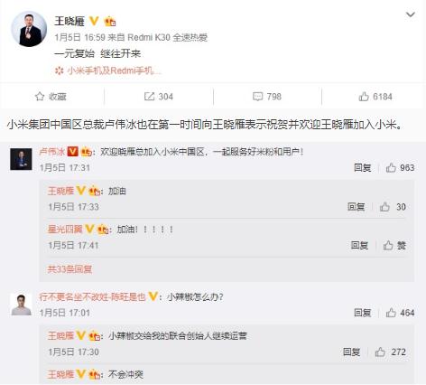 值得注意的是王曉雁還清空了此前的所有微博并將自己的微博認證修改為小米集團中國區(qū)副總裁,根據(jù)官方文件顯示他將兼任小米銷售二部總經(jīng)理,負責電商一部、電商二部、電商三部業(yè)務(wù)。