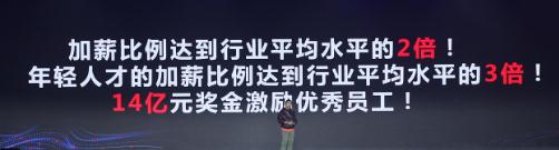 與此同時(shí),他還宣布京東零售 2020 年的加薪資源還將持續(xù)高投入。加薪比例將達(dá)到行業(yè)平均水平的 2 倍,其中,年輕人才的加薪比例更將達(dá)到行業(yè) 3 倍。此外,還將投入 14 億元獎(jiǎng)金用于激勵(lì)優(yōu)秀員工。