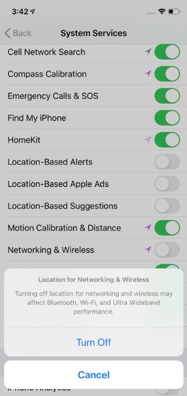 即使關(guān)閉了所有應(yīng)用的位置請求,新款 iPhone 狀態(tài)欄上仍然會出現(xiàn)定位圖標,人們原以為這只是個系統(tǒng)漏洞,直至去年 12 月安全記者布萊恩·克雷布斯(Brian Krebs)對此進行了調(diào)查。根據(jù)蘋果公司的說法,超寬頻芯片并不是在任何的國家地區(qū)都可以使用,因此 iPhone 11 會通過使用定位服務(wù)來確定該芯片是否可以啟用。