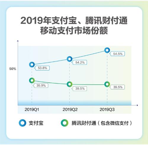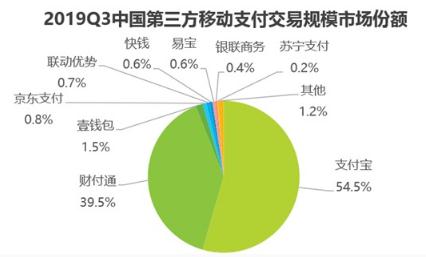 近期,獨(dú)立第三方機(jī)構(gòu)艾瑞發(fā)布最新移動(dòng)支付交易規(guī)模報(bào)告。根據(jù)報(bào)告,2019 年 Q3 支付寶移動(dòng)支付以 54.5% 的市場(chǎng)份額居首,財(cái)付通份額為 39.5% 排第二。