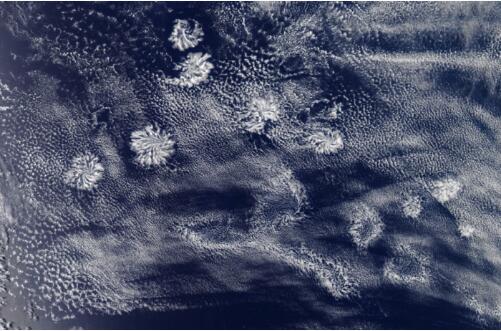 據(jù)外媒CNET報道,一些自然奇觀沒有大峽谷或維多利亞瀑布那么顯眼。近日美國宇航局(NASA)的一顆衛(wèi)星捕捉到在印度洋上空出現(xiàn)的一系列神秘的“玫瑰云”景象??雌饋砗孟袷菬o形的手把云層變成了插花。NASA的Aqua衛(wèi)星在1月29日捕捉到了這種令人嘆為觀止的景色,而該航天局的地球觀測站則在周五分享了這張圖像。這些云出現(xiàn)在澳大利亞西海岸。