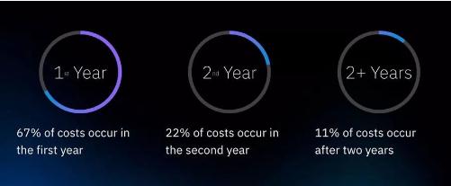 報(bào)告還表明,數(shù)據(jù)泄露造成的損失具有長(zhǎng)尾效應(yīng),其影響持續(xù)數(shù)年。數(shù)據(jù)泄露成本有 67% 出現(xiàn)在泄露發(fā)生后的第一年,有 22% 出現(xiàn)在第二年,另有 11% 在兩年后才顯現(xiàn)。對(duì)醫(yī)療保健、金融服務(wù)、能源和醫(yī)藥等受到嚴(yán)格監(jiān)管的企業(yè)而言,第二年和第三年的長(zhǎng)尾成本損失會(huì)更高。