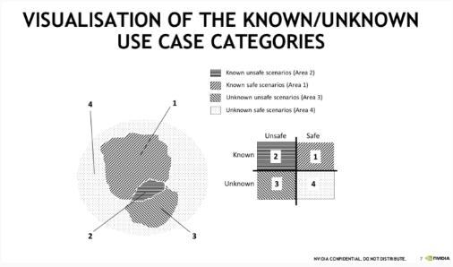 最需要關(guān)注的是區(qū)域3,即未知的不安全場景,由于該場景中存在著巨大的風(fēng)險,如果我們對其一直處于無法悉知的狀態(tài),我們就無法評估其中的風(fēng)險會對無人駕駛帶來多大的影響。