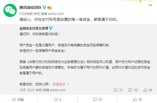 用戶資金一定是歸屬用戶,微信支付有完善的資金風(fēng)險(xiǎn)保障機(jī)制,