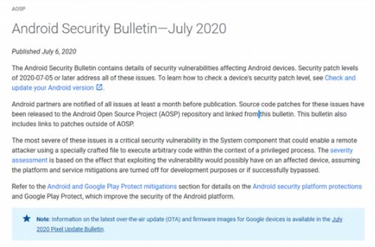今天谷歌發(fā)布了新的安全公告,Android 系統迎來 2020-07-01 和 2020-07-05 兩個安全補丁,都是解決棘手的安全漏洞。