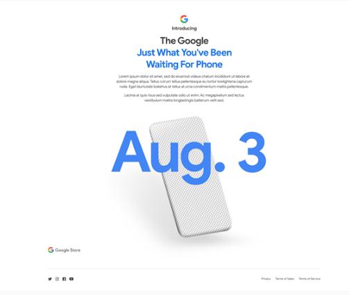 7 月 31 日消息,谷歌在其商城更新了一個(gè)全新頁(yè)面,該頁(yè)面顯示了一個(gè)手機(jī)圖片,并有 Agu.3 字樣。意味著這款手機(jī)將于 8 月 3 日發(fā)布。