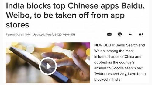 據(jù)《印度時(shí)報(bào)》報(bào)道稱,印度政府已要求該地區(qū)的谷歌和蘋果應(yīng)用商店下架百度搜索和新浪微博。知情人士稱,印度互聯(lián)網(wǎng)服務(wù)提供商也已被要求禁用這兩款應(yīng)用。