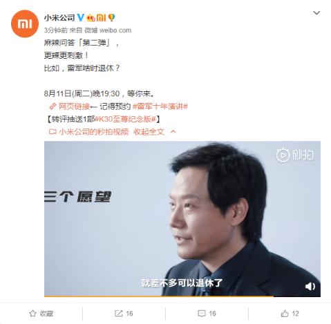 8 月 6 日消息,小米公司公布了小米創(chuàng)始人、小米集團董事長兼 CEO 雷軍的“麻辣問答”第二期。