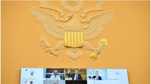 圖:2020 年 7 月 29 日,在美國眾議院司法小組委員會聽證會上,F(xiàn)acebook、亞馬遜、Alphabet 以及蘋果等四大科技公司首席執(zhí)行官宣誓作證
