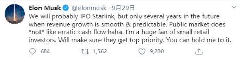 馬斯克計(jì)劃未來幾年內(nèi)讓 SpaceX 星鏈業(yè)務(wù)上市 圖片來源:推特截圖