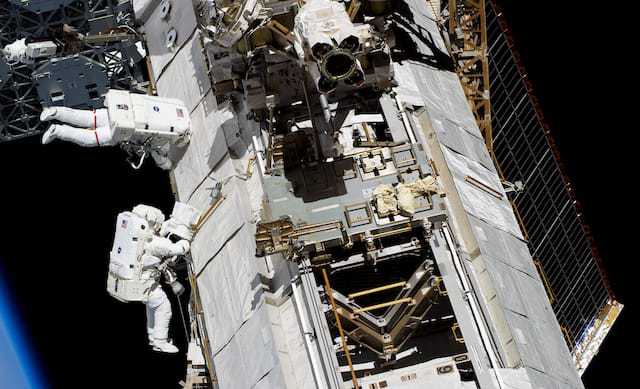 圖示:2011 年,在一次持續(xù) 6 小時(shí) 34 分鐘的太空行走中,NASA 宇航員史蒂夫·鮑文(Steve Bowen)和阿爾文·德魯(Alvin Drew)安裝了一根電力延長電纜,移動了失靈的氨氣泵,安裝了一個(gè)攝像頭和其他設(shè)備。國際空間站已經(jīng)連續(xù)使用 20 年時(shí)間,不斷進(jìn)行維護(hù)仍然是一項(xiàng)挑戰(zhàn)。