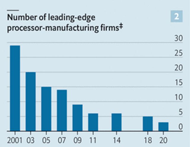 圖 2 銳減的芯片制造企業(yè)數(shù)量