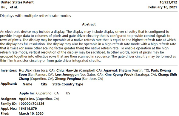 近日,美國(guó)專(zhuān)利和商標(biāo)局公布了一項(xiàng)新的蘋(píng)果專(zhuān)利,專(zhuān)利描述了一種 iPhone 顯示屏的多倍刷新率功能。